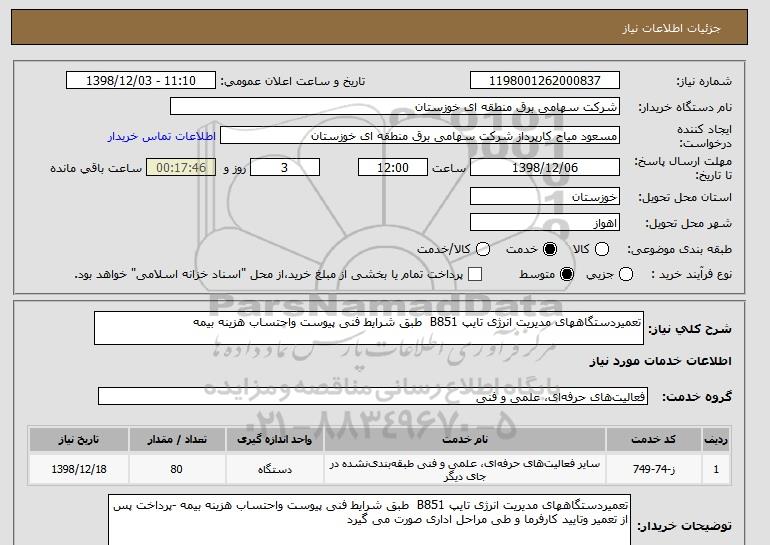 شرح کلی نیاز: تعمیردستگاههای مدیریت انرژی تایپ B851 طبق شرایط فنی پیوست واحتساب هزینه بیمه