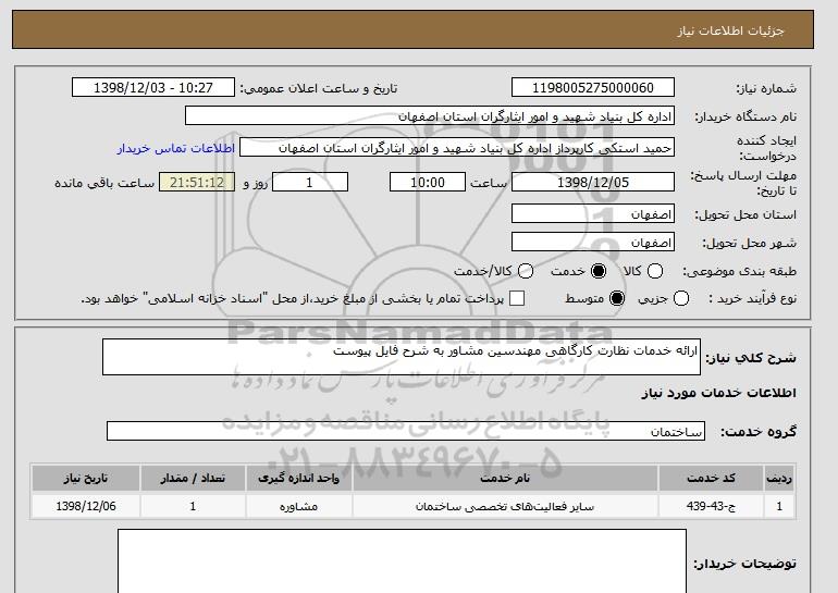 نام دستگاه خریدار:اداره کل بنیاد شهید و امور ایثارگران استان اصفهان