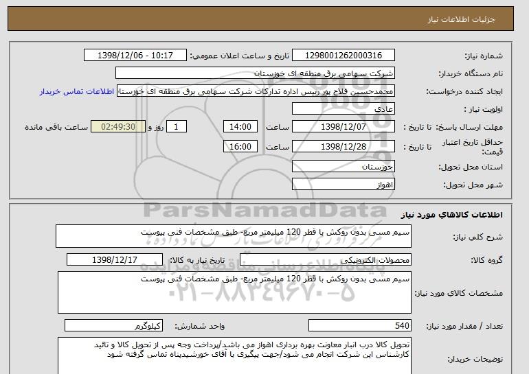 نام دستگاه خریدار:شرکت سهامی برق منطقه ای خوزستان