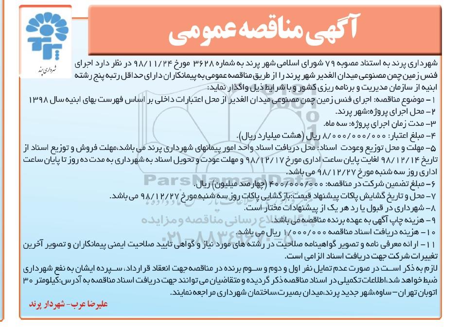 آگهی تجدید مناقصه دو مرحله ای 98/28 ؟