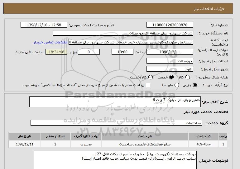 شرح کلی نیاز: تعمیر و بازسازی بلوک 7 واحد6