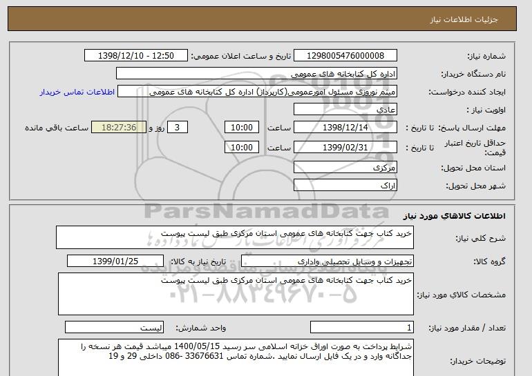 شرح کلی نیاز: خرید کتاب جهت کتابخانه های عمومی استان مرکزی طبق لیست پیوست