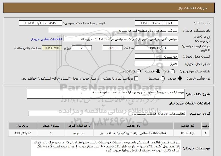 استعلام بهسازی درب ورودی معاونت بهره بر داری -با احتساب هزینه بیمه , استعلام بهسازی درب ورودی معاونت بهره بر داری -با احتساب هزینه بیمه