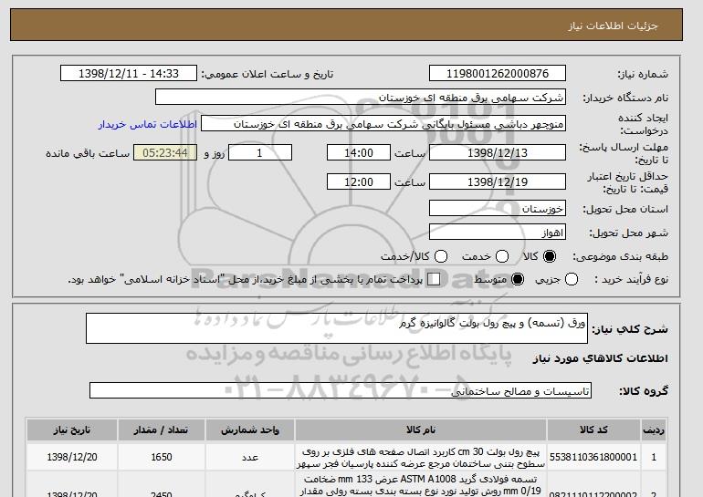 شرح کلی نیاز: ورق (تسمه) و پیچ رول بولت گالوانیزه گرم