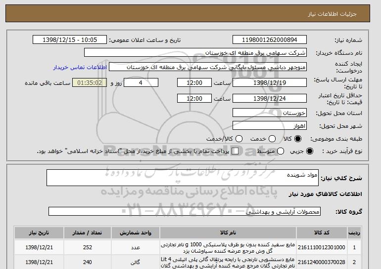 شرح کلی نیاز: مواد شوینده