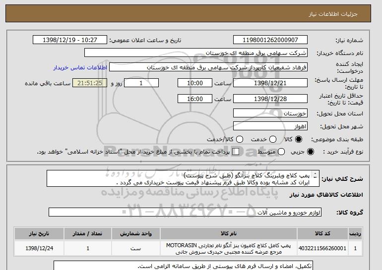 نام دستگاه خریدار:شرکت سهامی برق منطقه ای خوزستان