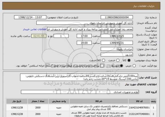 نام دستگاه خریدار:اداره کل آموزش و پرورش خراسان رضوی