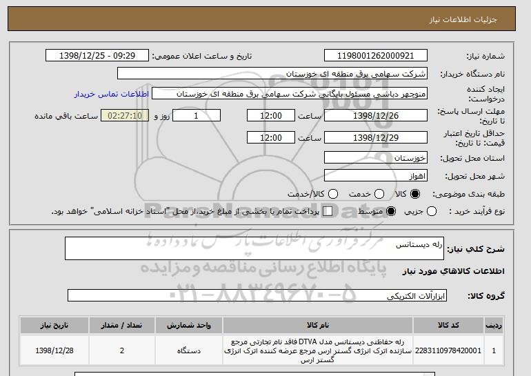 نام دستگاه خریدار:شرکت سهامی برق منطقه ای خوزستان