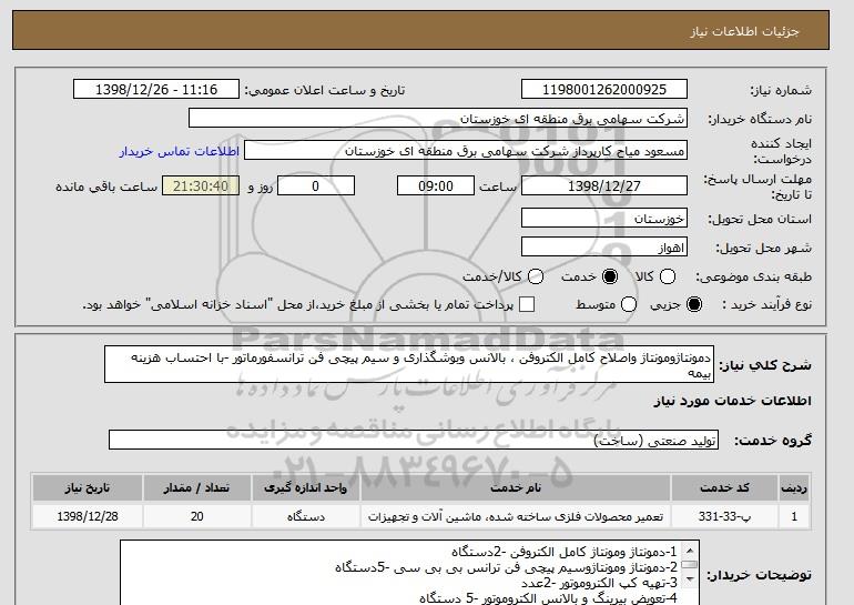 استعلام دمونتاژومونتاژ واصلاح کامل الکتروفن ، بالانس وبوشگذاری و سیم پیچی فن ترانسفورماتور -با احتساب هزینه بیمه , استعلام دمونتاژومونتاژ واصلاح کامل الکتروفن ، بالانس وبوشگذاری و سیم پیچی فن ترانسفورماتور -با احتساب هزینه بیمه