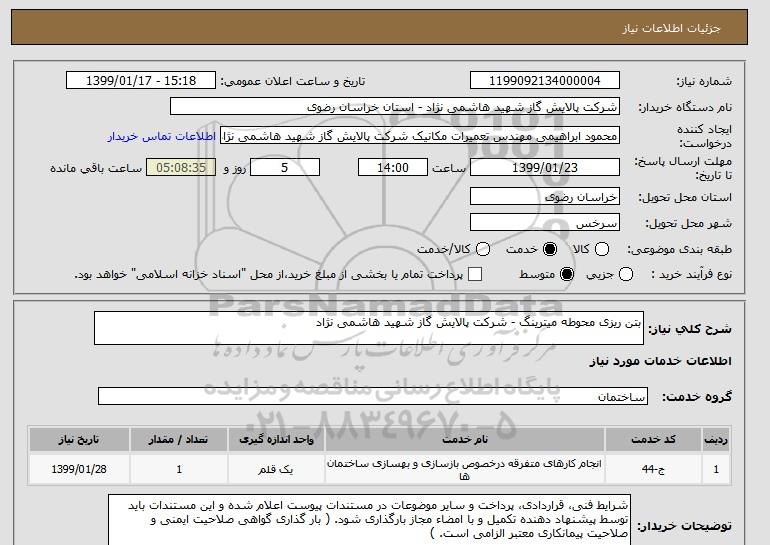 شرح کلی نیاز: بتن ریزی محوطه میترینگ - شرکت پالایش گاز شهید هاشمی نژاد