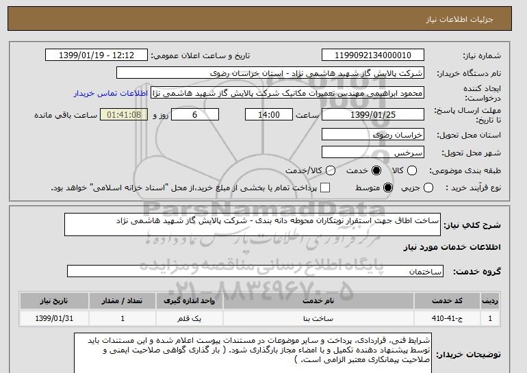 نام دستگاه خریدار:شرکت پالایش گاز شهید هاشمی نژاد - استان خراسان رضوی