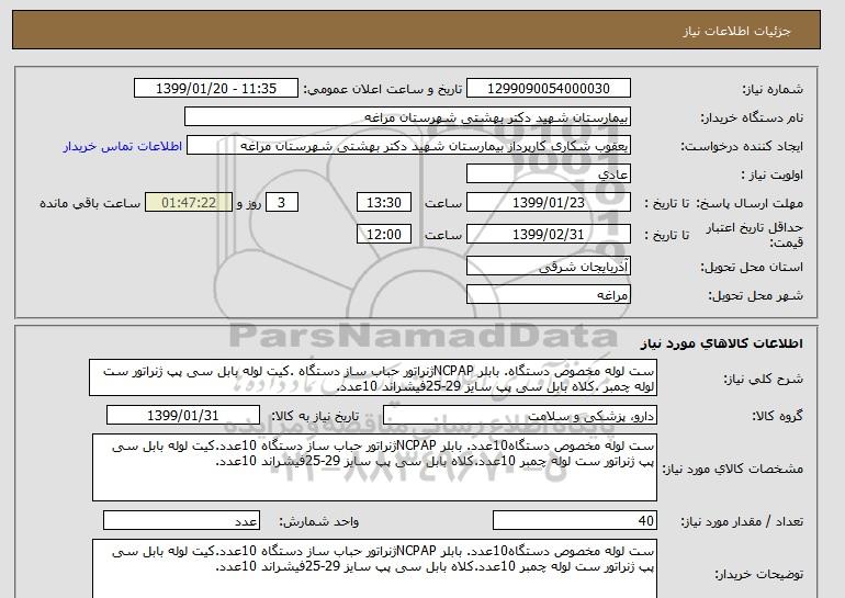 نام دستگاه خریدار:بیمارستان شهید دکتر بهشتی شهرستان مراغه