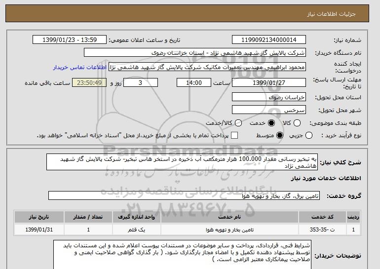 نام دستگاه خریدار:شرکت پالایش گاز شهید هاشمی نژاد - استان خراسان رضوی