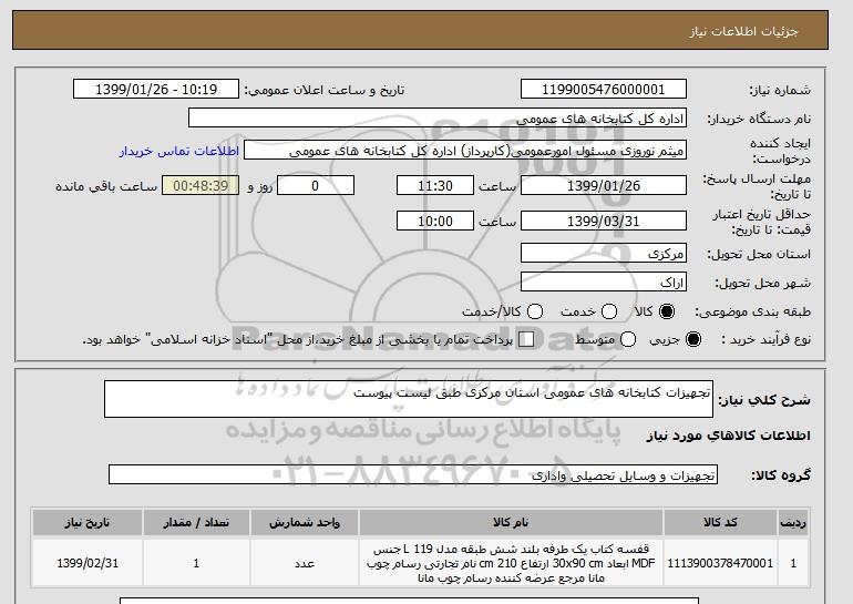 شرح کلی نیاز: تجهیزات کتابخانه های عمومی استان مرکزی طبق لیست پیوست
