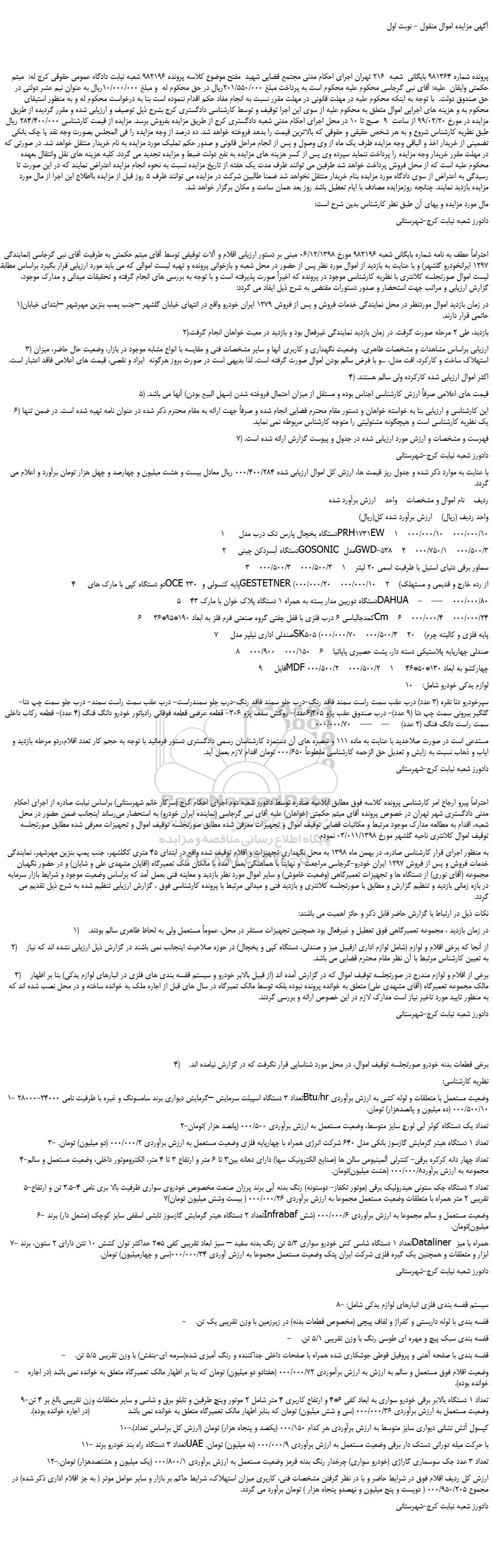 مزایده، مزایده فروش دستگاه یخچال پارس تک درب و...
