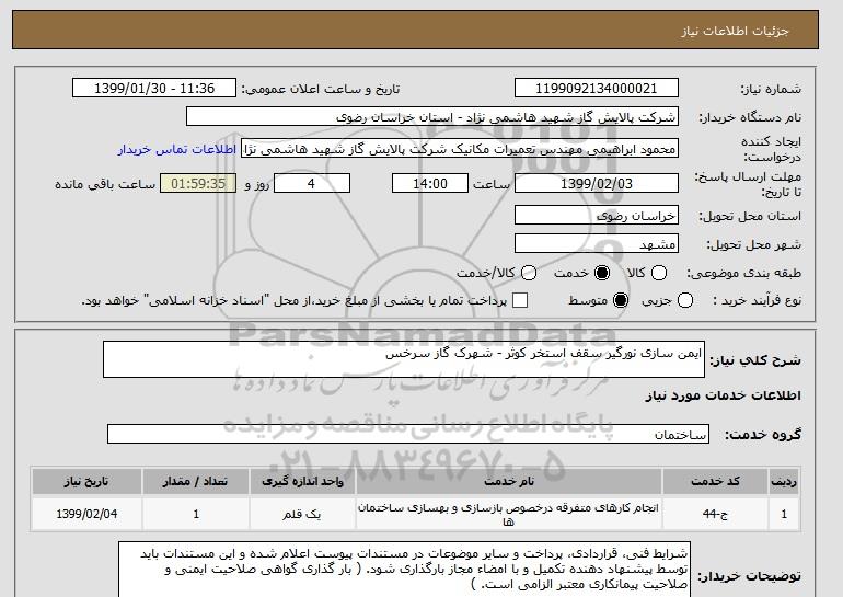 نام دستگاه خریدار:شرکت پالایش گاز شهید هاشمی نژاد - استان خراسان رضوی