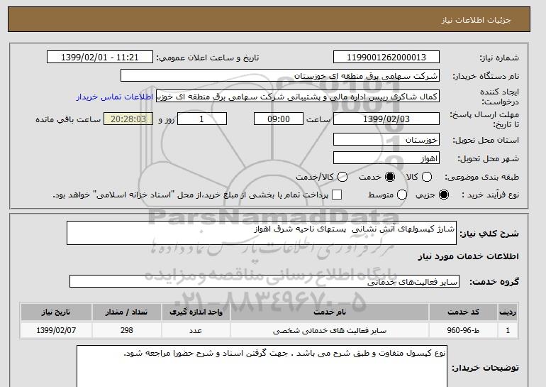 شرح کلی نیاز: شارژ کپسولهای آتش نشانی پستهای ناحیه شرق اهواز