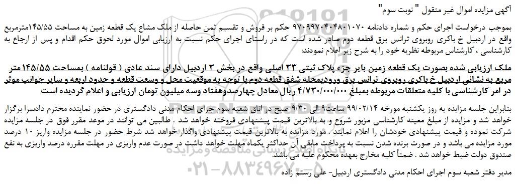 "آگهی مزایده اموال غیر منقول " نوبت سوم