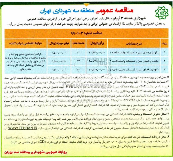 مناقصه عمومی منطقه سه شهرداری تهران ؟