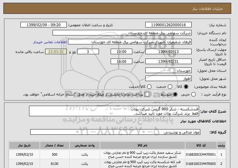 شرح کلی نیاز: قندشکسته - شکر 900 گرمی شرکت بوتات