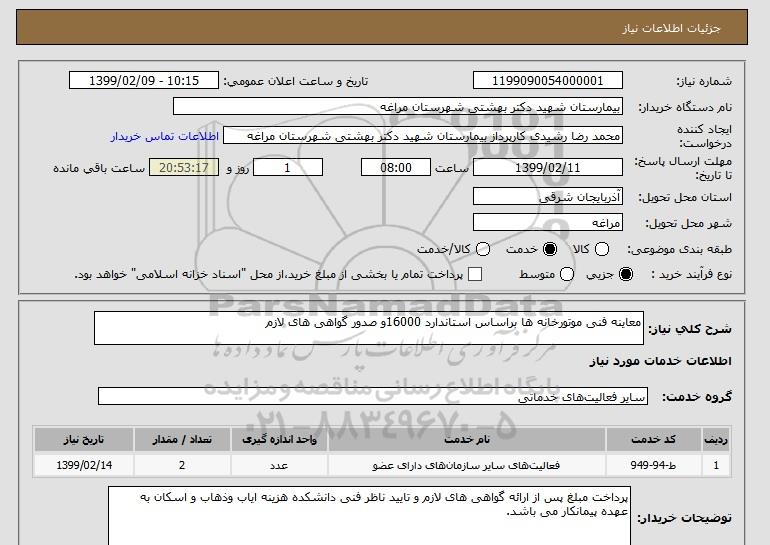 نام دستگاه خریدار:بیمارستان شهید دکتر بهشتی شهرستان مراغه