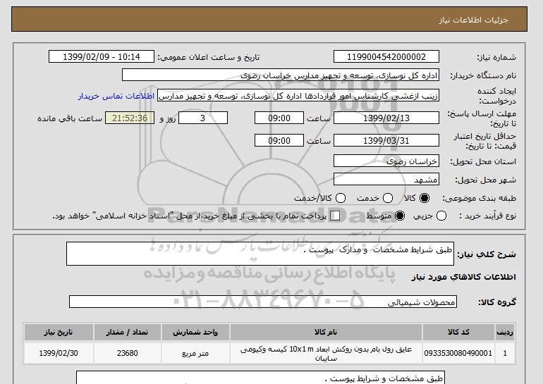 نام دستگاه خریدار:اداره کل نوسازی، توسعه و تجهیز مدارس خراسان رضوی