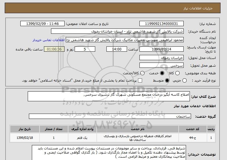 نام دستگاه خریدار:شرکت پالایش گاز شهید هاشمی نژاد - استان خراسان رضوی