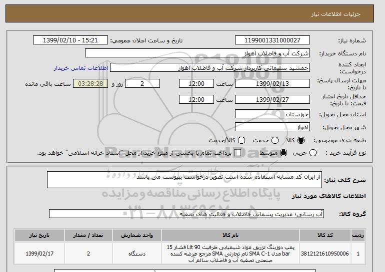 نام دستگاه خریدار:شرکت آب و فاضلاب اهواز