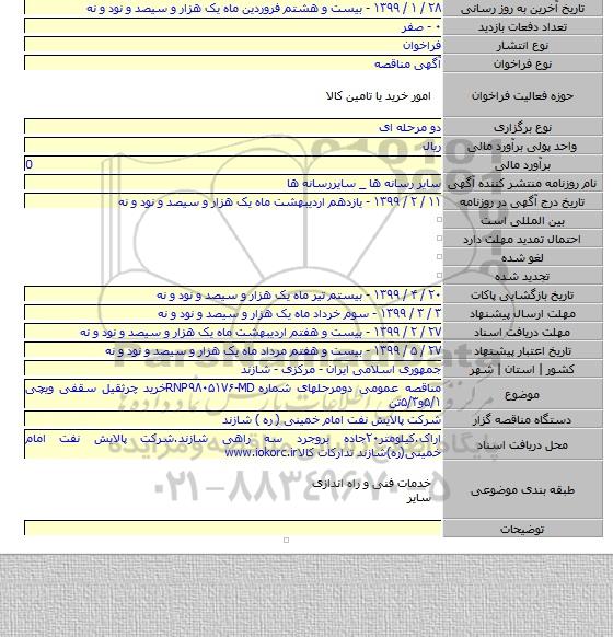 مناقصه عمومی دومرحلهای شماره RNP۹۸۰۵۱۷۶-MDخرید چرثقیل سقفی ویچی ۵/۱و۵/۳تن