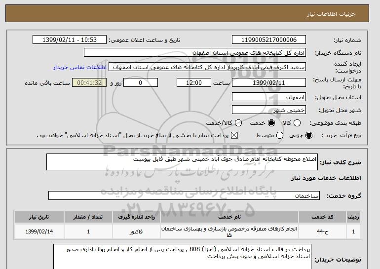 شرح کلی نیاز: اصلاح محوطه کتابخانه امام صادق جوی آباد خمینی شهر طبق فایل پیوست