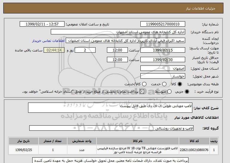 نام دستگاه خریدار:اداره کل کتابخانه های عمومی استان اصفهان