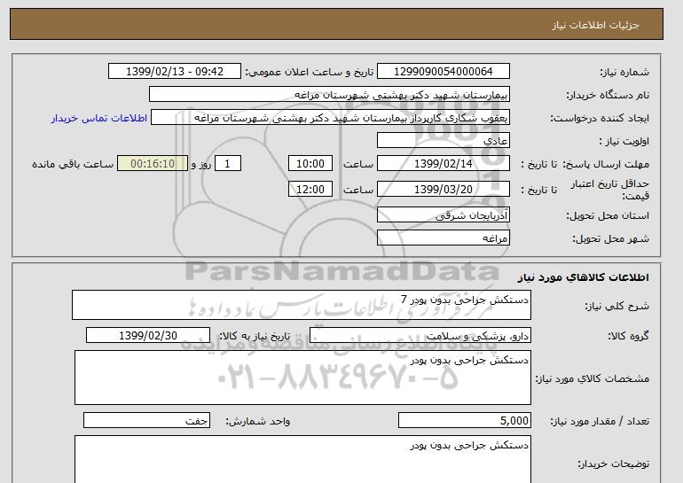 نام دستگاه خریدار:بیمارستان شهید دکتر بهشتی شهرستان مراغه