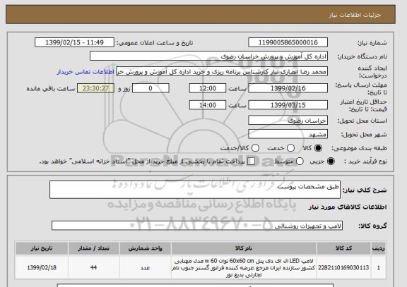 نام دستگاه خریدار:اداره کل آموزش و پرورش خراسان رضوی