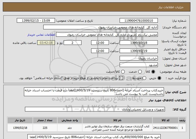 نام دستگاه خریدار:اداره کل کتابخانه های عمومی خراسان رضوی