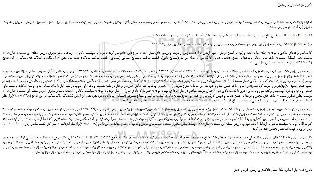 شعبه صادر کننده:شعبه اول اجرای احکام مدنی دادگستری شهرستان اردبیل/قدیم