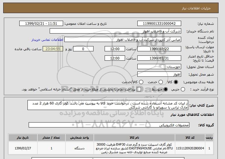 شرح کلی نیاز: ز ایران کد مشابه استفاده شده است . درخواست خرید کالا به پیوست می باشد کولر گازی 60 هزار 2 عدد مارک تراس یا سوپرانو با گارانتی شرکتی