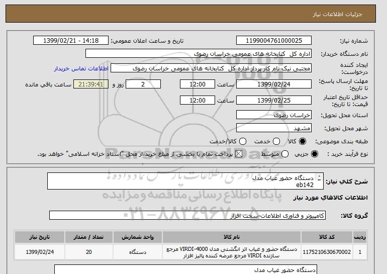 نام دستگاه خریدار:اداره کل کتابخانه های عمومی خراسان رضوی