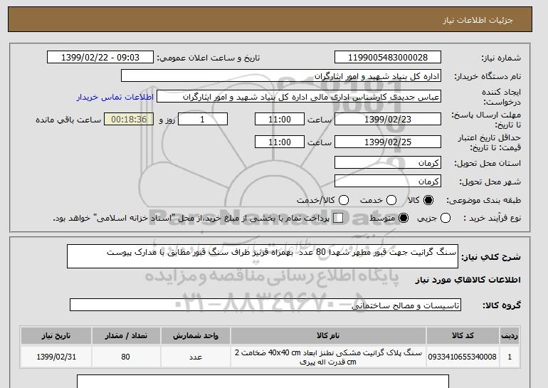 شرح کلی نیاز: سنگ گرانیت جهت قبور مطهر شهدا 80 عدد بهمراه قرنیز طراف سنگ قبور مطابق با مدارک پیوست