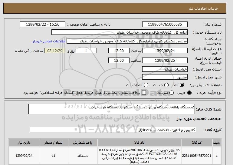 نام دستگاه خریدار:اداره کل کتابخانه های عمومی خراسان رضوی