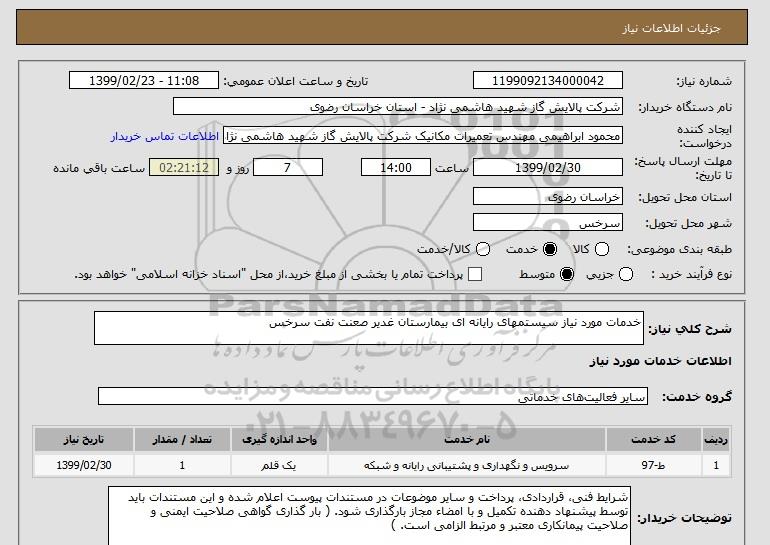 شرح کلی نیاز: خدمات مورد نیاز سیستمهای رایانه ای بیمارستان غدیر صعنت نفت سرخس