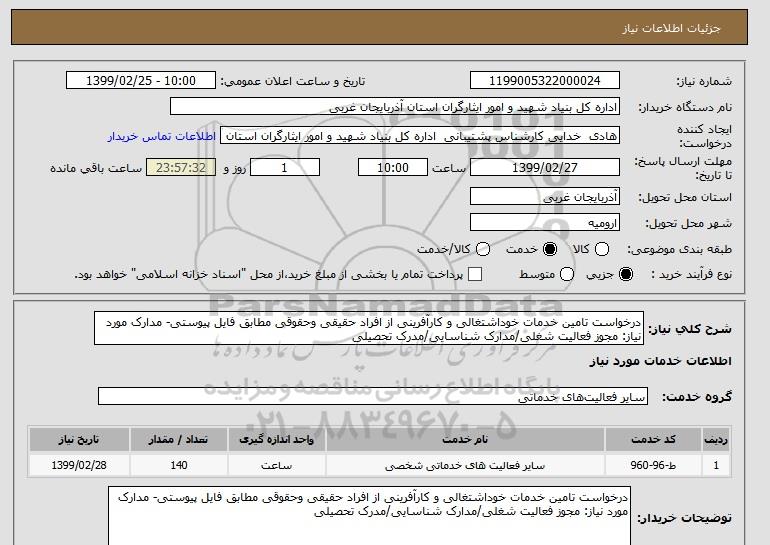 نام دستگاه خریدار:اداره کل بنیاد شهید و امور ایثارگران استان آذربایجان غربی