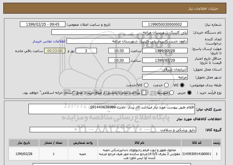 نام دستگاه خریدار:پلی کلینیک شهرستان مراغه