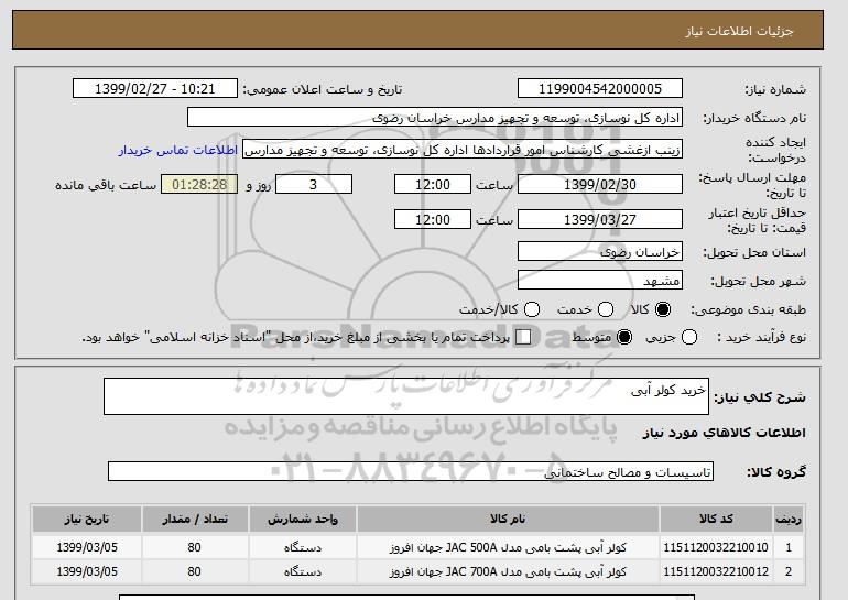 نام دستگاه خریدار:اداره کل نوسازی، توسعه و تجهیز مدارس خراسان رضوی