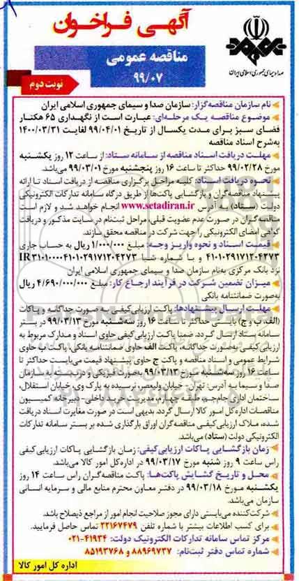 - نام سازمان مناقصه گزار: سازمان صدا و سیمای جمهوری اسلامی ایران