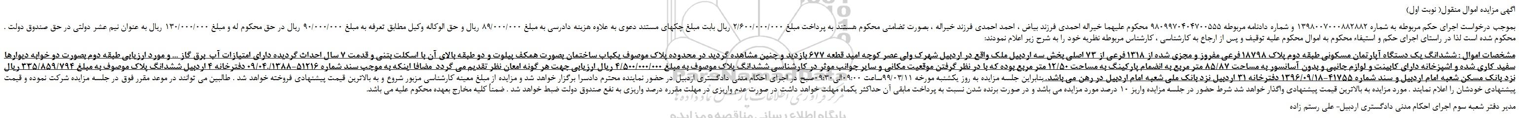 شعبه صادر کننده:شعبه سوم اجرای احکام مدنی دادگستری شهرستان اردبیل