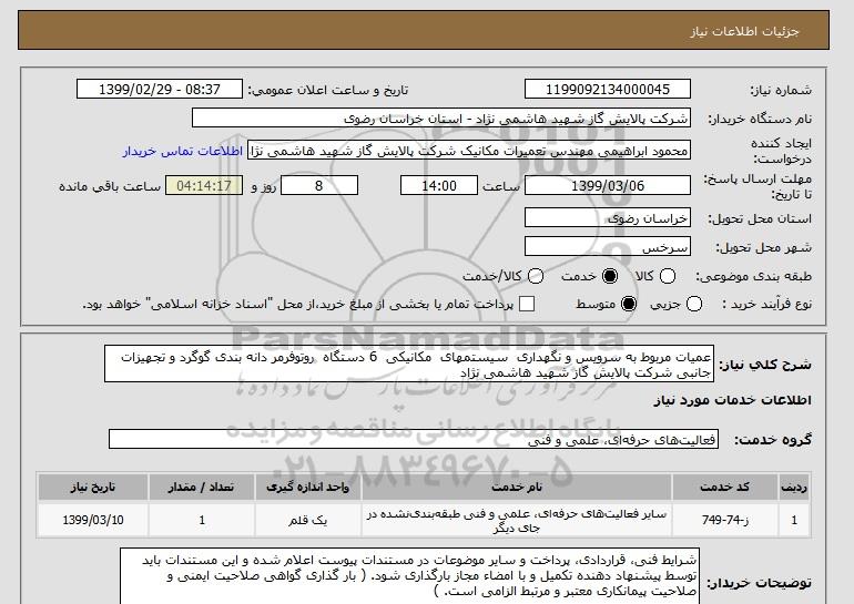 نام دستگاه خریدار:شرکت پالایش گاز شهید هاشمی نژاد - استان خراسان رضوی