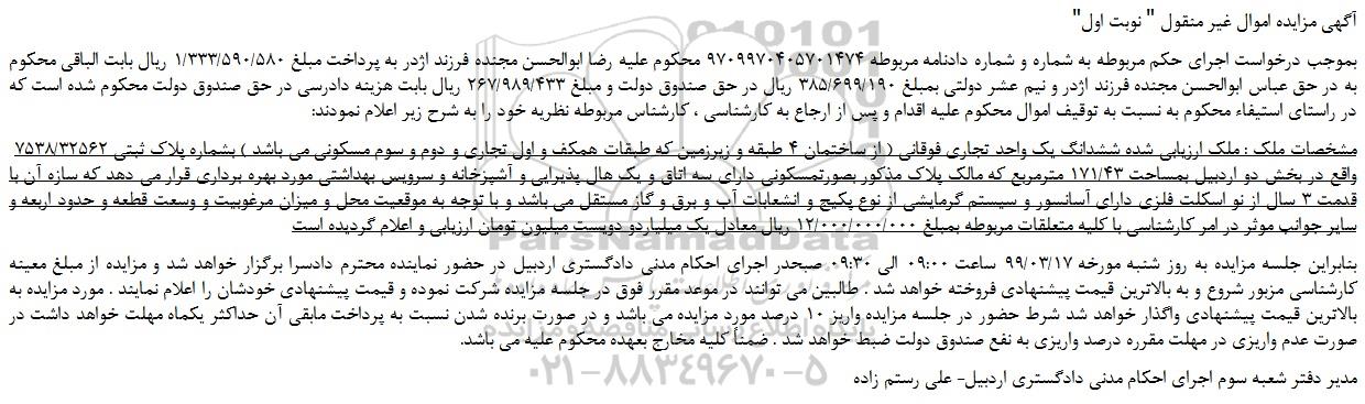 "آگهی مزایده اموال غیر منقول " نوبت اول