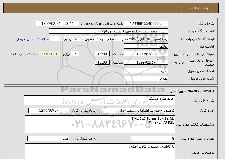 شرح کلی نیاز: خرید هارد دیسک