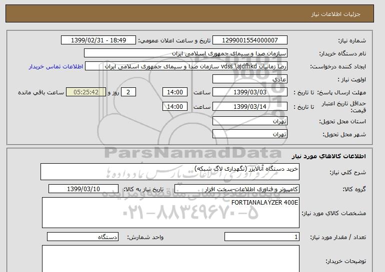 نام دستگاه خریدار:سازمان صدا و سیمای جمهوری اسلامی ایران