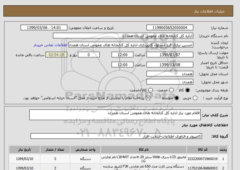 شرح کلی نیاز: اقلام مورد نیاز اداره کل کتابخانه های عمومی استان همدان